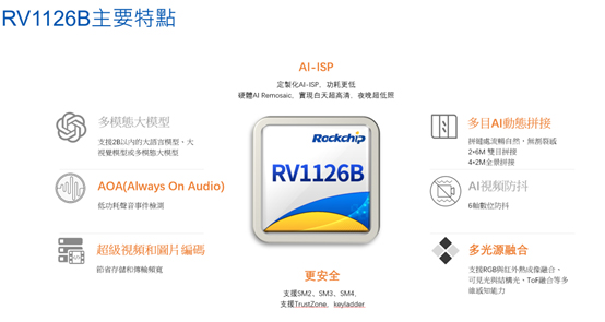 基於以上場景,若能再搭配在IP CAM應用今年度Rockchip所推出的新產品RV1126B即可完成一套完整的智能安防解決方案